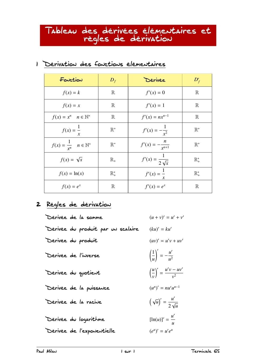 Dérivée d’une fonction: